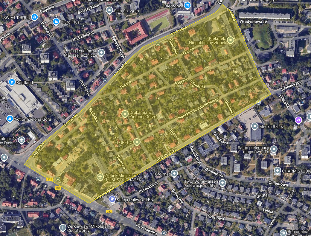 Na zachodnich stokach zielonogórskiego Wzgórza Braniborskiego (niem. Grünbergshöhe, 203 m n.p.m.) Niemcy zbudowali sporo przeuroczych domków. Na południowych i wschodnich zaś rosły winorośle.