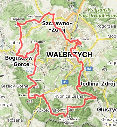 - pętla około 82 km w Górach Suchych, Wałbrzyskich