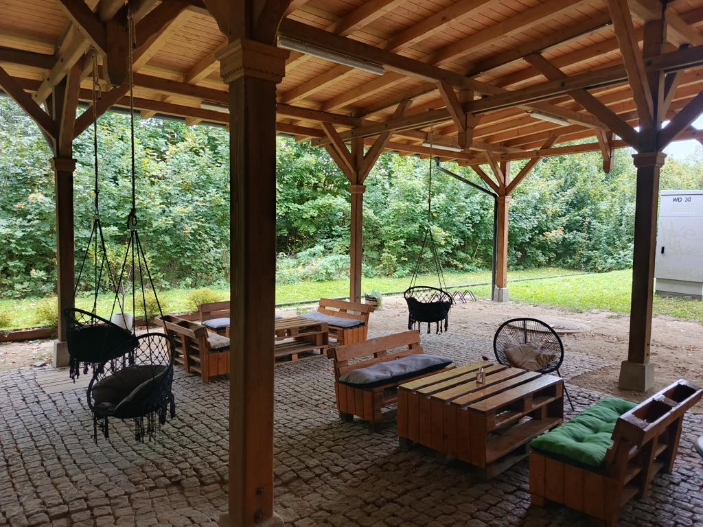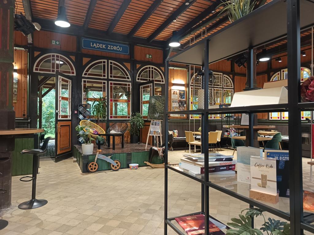 Lokal znajduje się w pięknie zrewitalizowanym budynku dawnego dworca, który aktualnie nie pełni już swojej podstawowej funkcji. ( prawdopodobnie w tym roku rozpocznie się rewitalizacja linii kolejowej i pociąg znów powróci do Lądka, ale póki co nie uświadczysz tu takiego luksusu - patrz kesz od Nannette nieopodal CZEKAJĄC NA POCIĄG W LĄDKU - OP9NNF - bardzo fajny i zabawny kesz - polecam :)