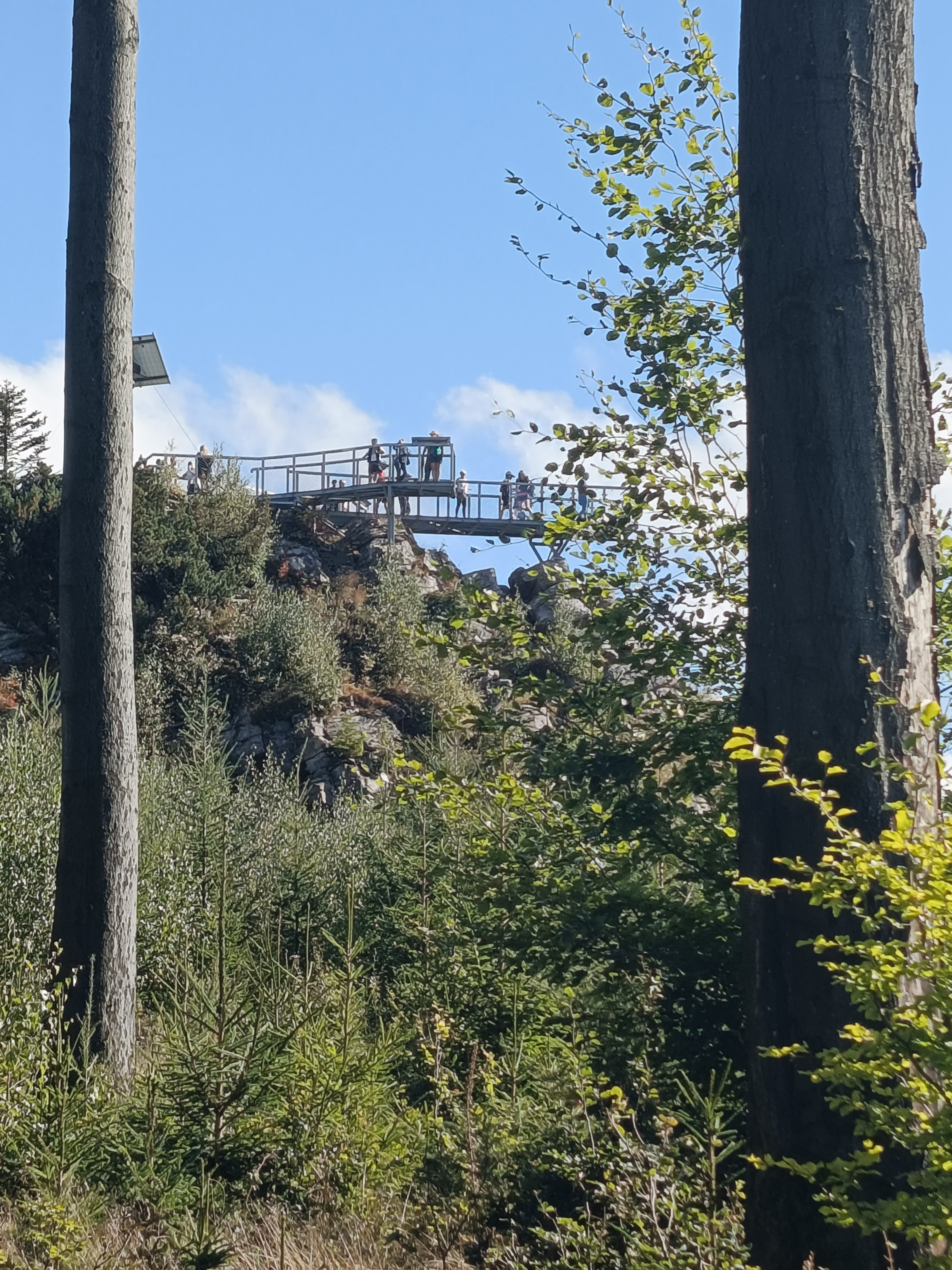Kobieta była od niej z pewnością starsza, choć naciągnięta opaską skóra na twarzy nie była w stanie zdradzić jej dokładnego wieku. Klaudia zdała sobie sprawę, że nawet się sobie nie przedstawiły, przez co nie zna jej imienia. Postanowiła nadrobić zaległości już na Trojaku. Ostatnie metry dłużyły się niemiłosiernie , ale wiedziała, że są już prawie u celu. Przyspieszyła nieco, a towarzyszka starała się dotrzymać jej kroku, ale po chwili odpuściła. Klaudia dotarła na miejsce pierwsza, a jej kompanka dopiero po kilkunastu sekundach. Znalazły się tuż przy platformie widokowej, która wśród mieszkańców i turystów była jednym z najchętniej odwiedzanych w okolicy miejsc. Na pięknej nagiej skale wybudowano metalowy podest z wysokimi barierkami na których można było dotrzeć za pomocą kilku schodków. Już na początku podest rozdzielał się na trzy osobne ścieżki, z których każda kończyła się z innej strony skały. Dzięki temu z Trojaka można było podziwiać panoramę Gór Złotych z trzech odrobinę różnych perspektyw. Klaudia kochała to miejsce za widok na skały, las i Czarną Górę, po której zimą zjeżdżała na nartach.( A. Kunderman, "Złuda" )