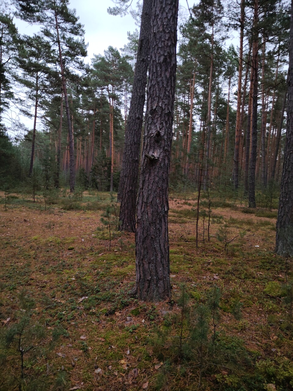 Szybka petka tuż za drzewem. Na przeciwko drzewa ze znakiem szlaku, po drugiej stronie drogi...