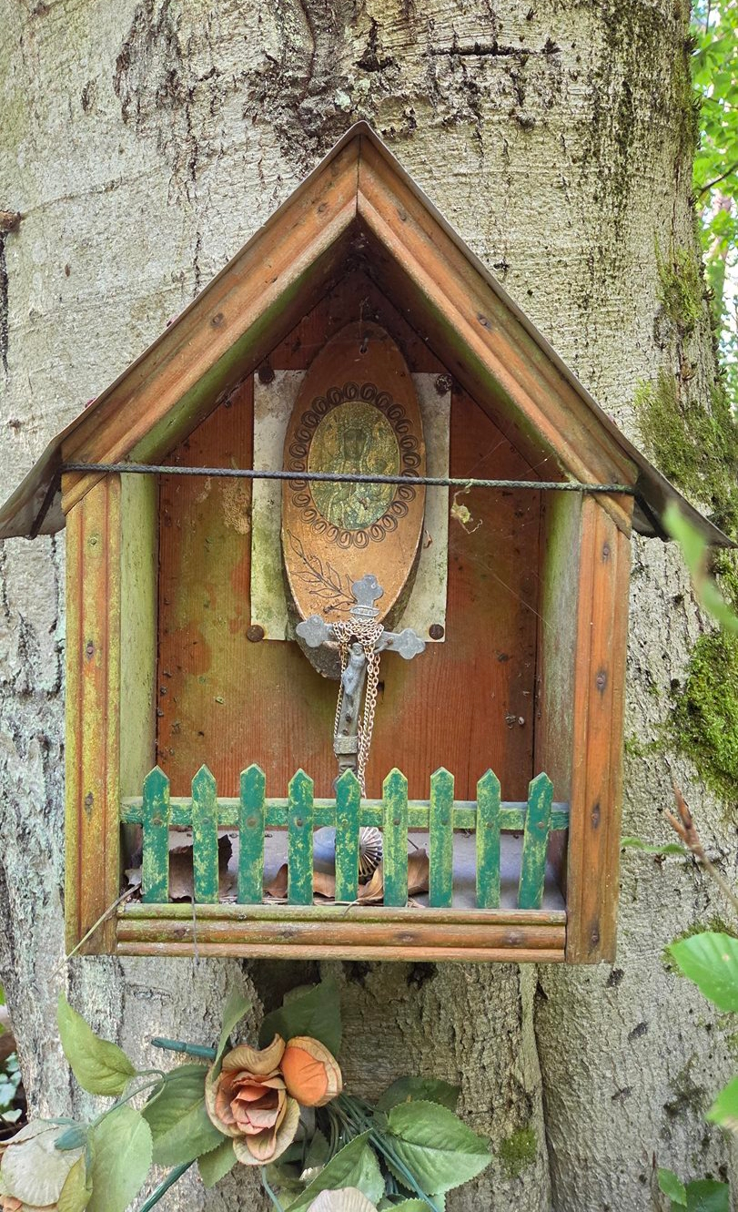 W dawnych czasach drzewo na którym była zawieszona kapliczka uważano za poświęcone i nie mogło być ścięte. Krążyły nawet opowieści o drwalach, którzy podnieśli siekierę na takie drzewo i potem dosięgały ich tajemnicze historie.