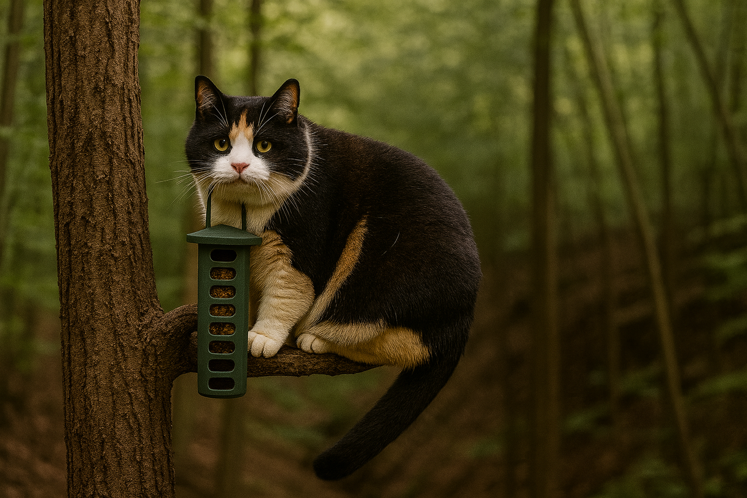 Na Kocich Górkach żyje kot, który jest kompletnie popsuty jak na kota. Zamiast polować na ptaki… on je dokarmia. Serio. Wołają na niego Klakier – bo jak tylko zobaczy stadko wróbli, to nie słychać w lesie „miauu”, tylko radosne „klak-klak-klak”, jakby je dopingował, a nie ścigał.