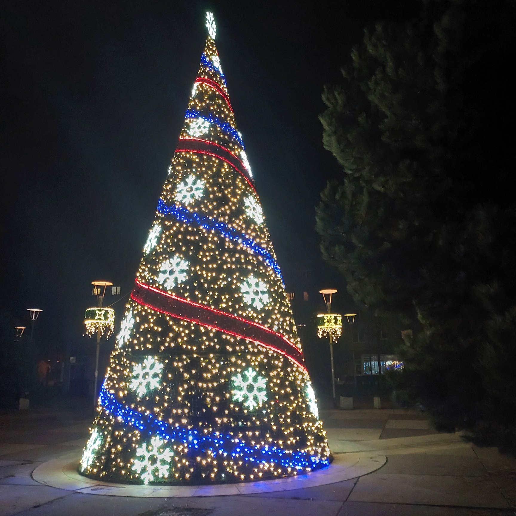 Znajduje się na/w ozdobie. Szukaj na dole , tam, gdzie niebieskie światło styka się z chodnikiem.
