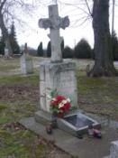 Grób Jana Mitrockiego, położony jest po prawej stronie głównego wejścia na cmentarz parafialny, przed linią rosnących wysokich żywotników.