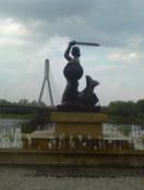 Syrena –symbol i herb stolicy. Pomnik projektu Ludwiki Nitschowej wykonano lipcu (kwietniu?) 1939, w odlewni braci Łopieńskich. Modelką była Krystyna Krahelska autorka piosenki powstańczej „Hej chłopcy bagnet na broń”.Drugi pomnik Syreny stoi na rynku Starego Miasta. Więcej do poczytania na wiki. Pod pomnikiem tablica o nadaniu mieszakańcom Warszawy Krzyża Srebrnego Orderu Wojennego "Virtuti Militari" V klasy, przez gen. Sikorskiego. Dokładność +-4m.