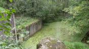 Forteczny jaz spiętrzający wody kanału taktycznego. Zachowana kanstrukcja żelbetonowa i nasypy, mechanizmy przelewu zdemontowane i zniszczone.