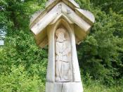 Kesz - mały pojemnik - za kapliczką na skraju lasu, po lewej stronie kapliczki.