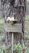Pojechaliśmy tam niedawno. Gdy tylko się wjedzie do lasu od razy widać na sosnach czerwone strzałki i biało czerwone szlaki na nich namalowane, które wskazują drogę do „miejsca objawień”. Odnaleźliśmy tabliczkę wskazującą kierunek, którą wcześniej kolega widział, a stąd już do miejsca było niedaleko. Znaleźliśmy sosnę ze szramą, starą tabliczkę informującą że to „święte miejsce” i nowy krzyż z przytwierdzoną tabliczką, na której było napisane: „Miejsce Święte. W tym miejscu objawił się Jezus Chrystus na tej sośnie w 1952 r. M.D.”
