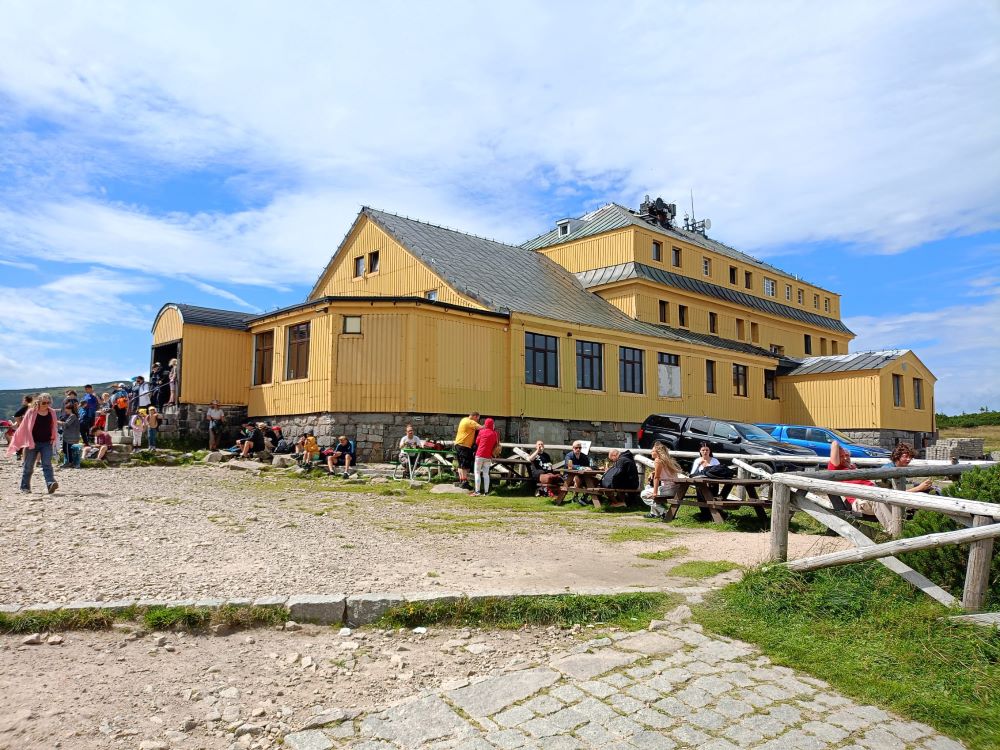 dotarliście do Domu Śląskiego - schroniska górskiego położonego u podnóża Śnieżki na wysokości 1400 m n.p.m. na granicy polsko-czeskiej. Budynek zbudowano według projektu architekta Herberta Erasa. Z zewnątrz reprezentuje formę charakterystyczną dla niemieckich schronisk sudeckich z okresu międzywojennego. Obiekt posiada blisko 60 miejsc noclegowych, wcześniej był m.in. strażnicą Wojsk Ochrony Pogranicza, później Straży Granicznej. Od 2007 obiekt jest własnością prywatną.