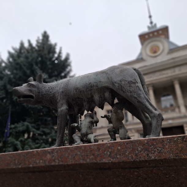 Podczas spaceru po mieście natrafiliśmy na ten jakże ciekawy budynek i jeszcze ciekawszą rzeźbę przed jego wejściem.