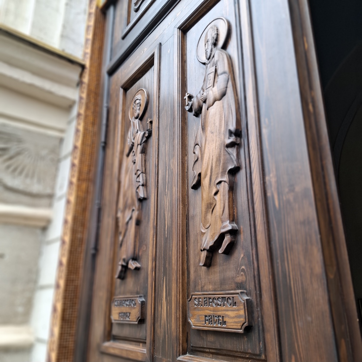 Nowoczesny obraz przy wejściu otrzymał zgodę władz prawosławnych pomimo niekonwencjonalnej interpretacji artystycznej.
