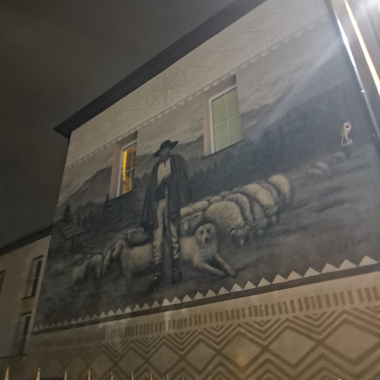 Mural został stworzony przez członka oddziału z Wilkowic, artystę Macieja Szymonowicza-pomysłodawcę projektu „Etnograff ”,autora m.in. albumu „Gajdosze” oraz liderem zespołu ”Psio Crew”. Obraz przedstawia górala wraz ze swoim stadem owiec podczas wypasu na hali. Autor inspirował się starą fotografią wykonaną na wilkowickich terenach.