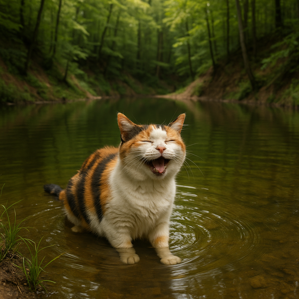 Frida jest dziwna jak na kota – zamiast unikać wody, lubi się pluskać przy brzegu, moczyć łapy i czaić na wszystko, co się rusza w trzcinach. Czasem podobno siada przy znaku, zerkając raz na tablicę, raz na taflę wody, jakby sprawdzała, czy wszystko się zgadza z „kocią wersją geologii”.