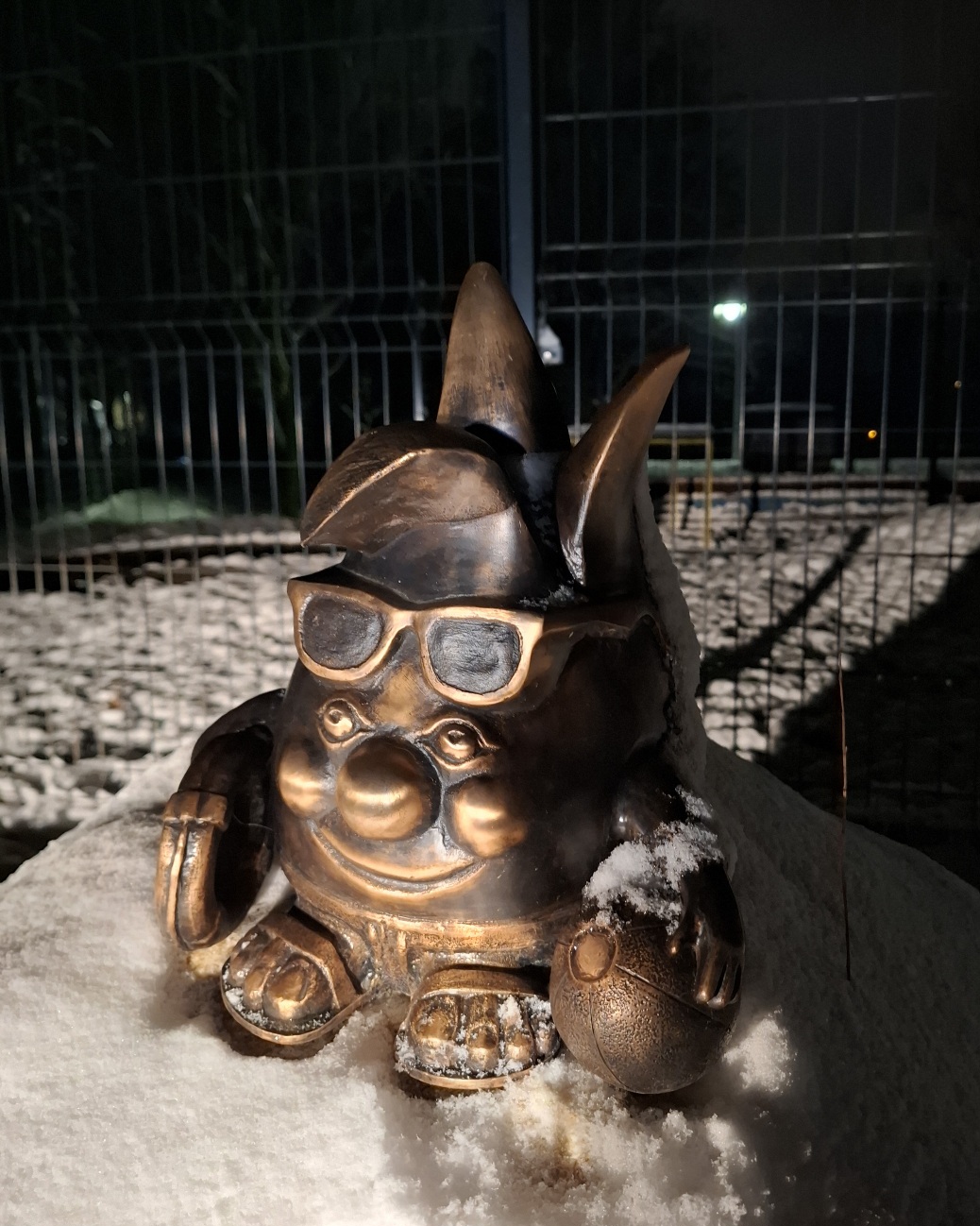 My napotknelismy się na tego Żorka w zimowej aurze a on jest typowo letnia "maskotką". Znajdziecie go przed wejściem na kąpielisko "Rajska Fala". Dzierży on w łapce koło ratunkowe, piłkę plażową, a na czole ma okulary przeciwsłoneczne 😎 Jak Wam się podoba?