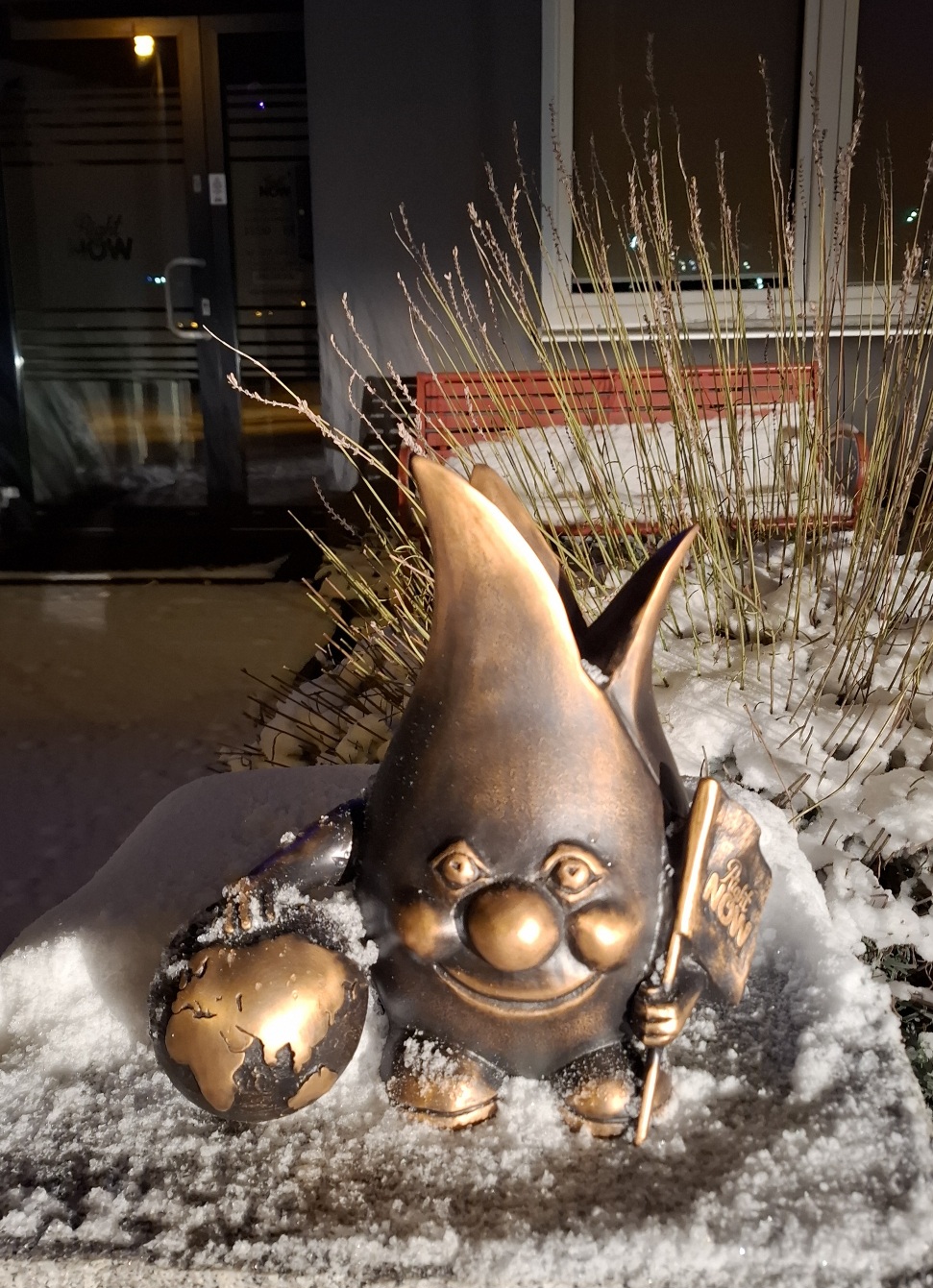 Figurka stanęła dumnie przed nową siedzibą żorskiej szkoły językowej Right Now i symbolicznie uczciła jubileusz 33-lecia istnienia placówki.