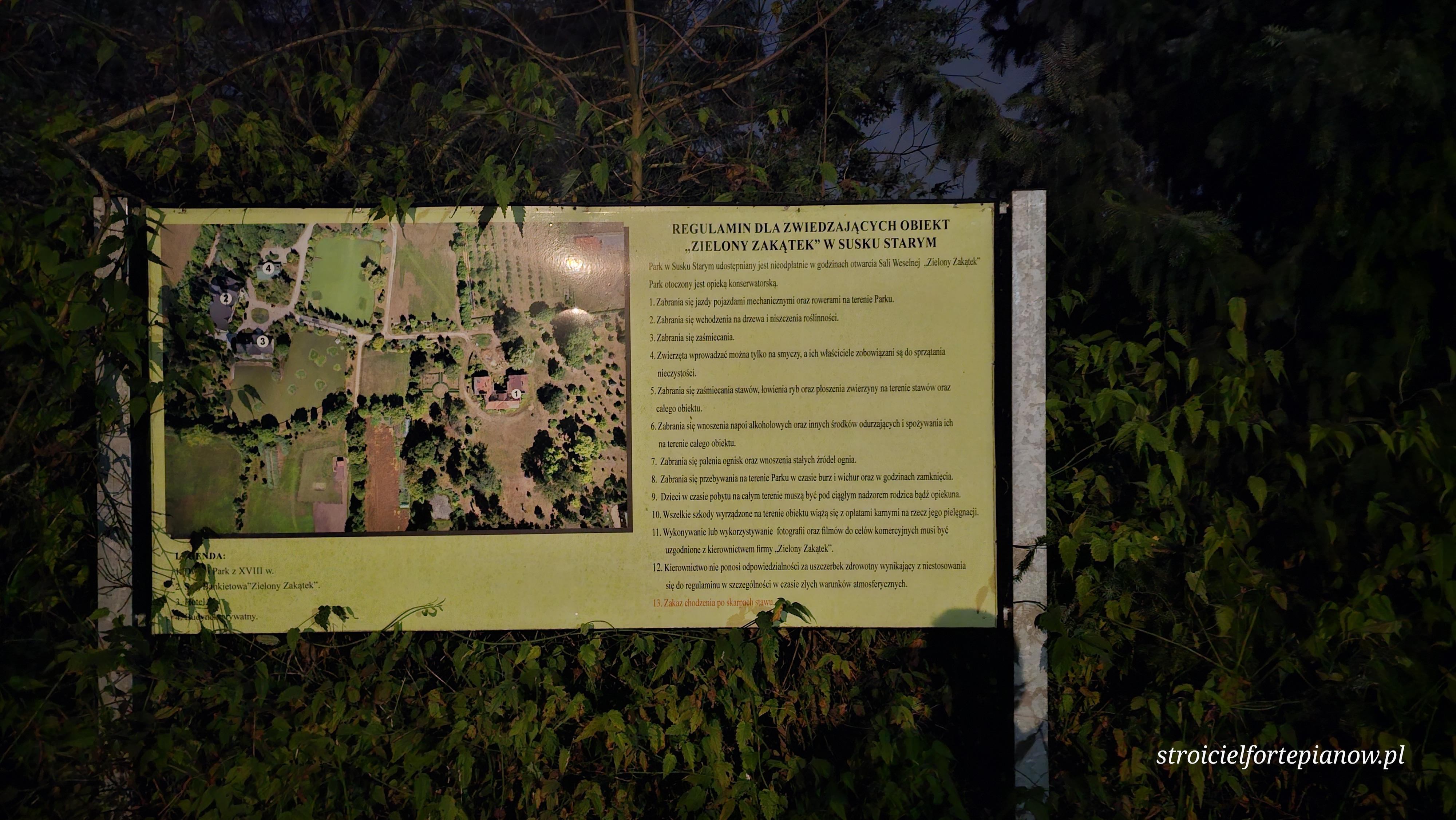 Przy współrzędnych kesza jest wjazd na parking Zielonego zakątka, przy którym jest tablica z regulaminem. Można tam sobie zaparkować, skoczyć po skrzynkę i zacząć zwiedzanie okolicy.
