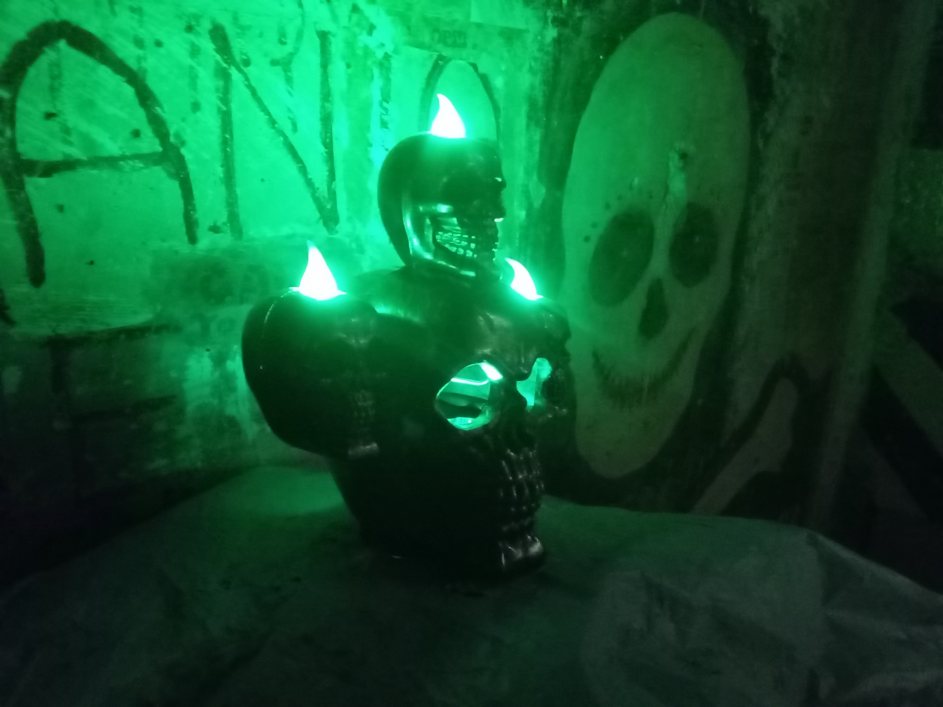 Czaszka odnosi się zazwyczaj do ozdobnych zabawek, świec w kształcie czaszki lub symboliki w religii i kulturze.To prosta skrzynka mobilna zawierająca tylko logbook. Konstrukcja skrzynki z bateria.Można zabrać skrzynkę albo wpisać się tylko w logbooka.