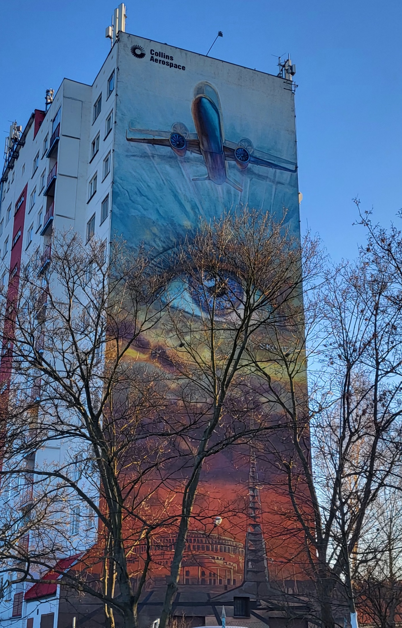 Ten piękny mural znajduję się przy ul. Bierutowskiej 8. Jego autorem jest Filip „Skont” Niziołek – znany wrocławski artysta streetartowy. Monumentalne dzieło o wymiarach 35 × 11 metrów opowiada historię miasta i ludzi związanych z lotnictwem. Kompozycja podzielona jest na trzy części: u dołu pojawiają się symbole Wrocławia – Hala Stulecia i Iglica, w centrum zaś oko wizjonera, skierowane ku przyszłości i lecącemu samolotowi – metaforze marzeń i rozwoju.