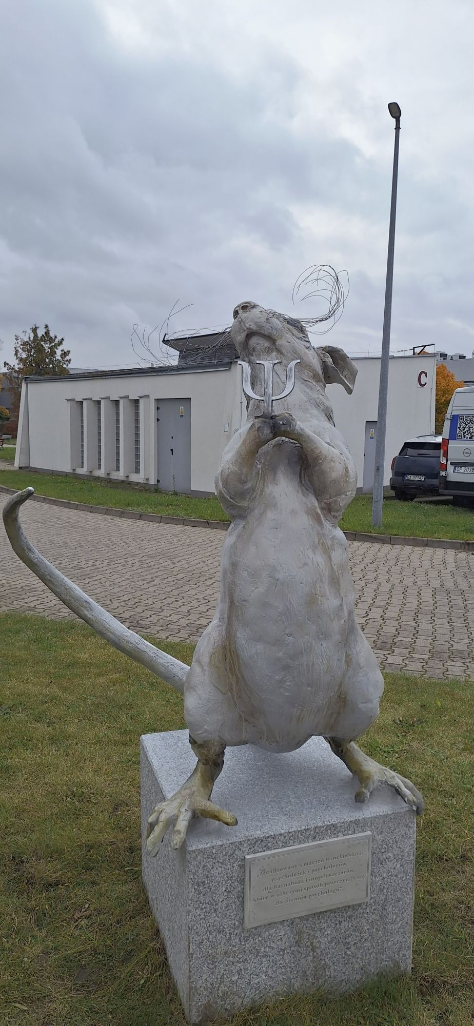 Nie wszystkie pomniki powstają ku czci królów, generałów czy poetów. Na terenie Uniwersytetu SWPS stoi rzeźba poświęcona… szczurowi laboratoryjnemu.