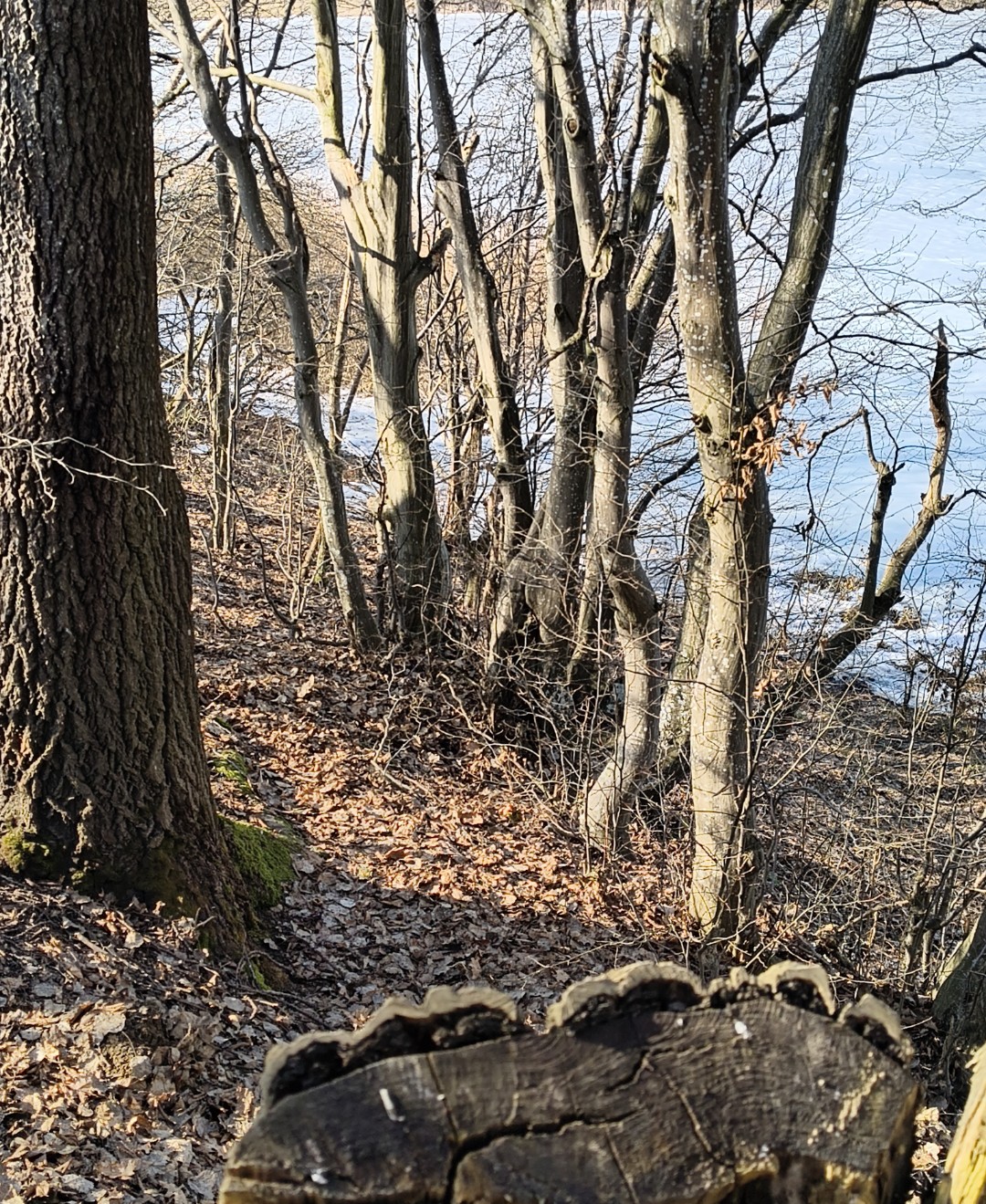 Na kordach kilka metrów za pniem i przewróconym drzewem.