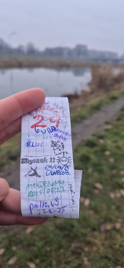 Po ilości wpisów w logbooku można ocenić, że to popularna skrzynka. Udało mi się jeszcze dopisać, ale wiele więcej się nie zmieści.