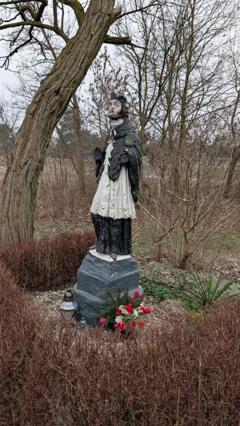 Jest Nepomucen, stoi tam i chroni. Jakiś taki już mocno zmęczony swoją posługą.