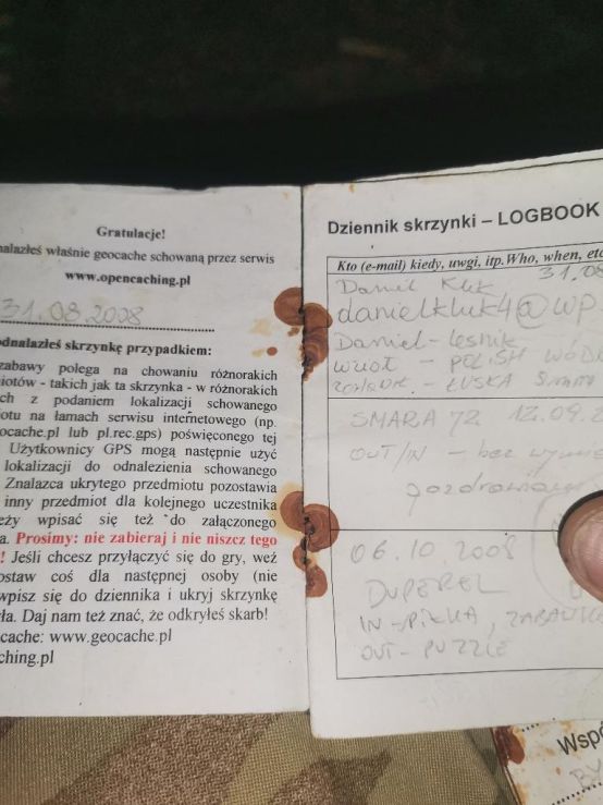 Niestety, była totalnie splądrowana - w środku tylko jakieś metalowe śmieci, logbook i ołówek.
