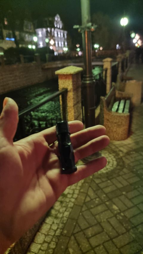 . Koleżanka odtańczyła taniec radości po odnalezieniu. Na szczęście deptak był pusty wieczorową porą późnej jesieni. Skrzyneczka malutka ale zmieściła się mini żabka z monetą na szczęście. Miniaturyzacja wskazana.