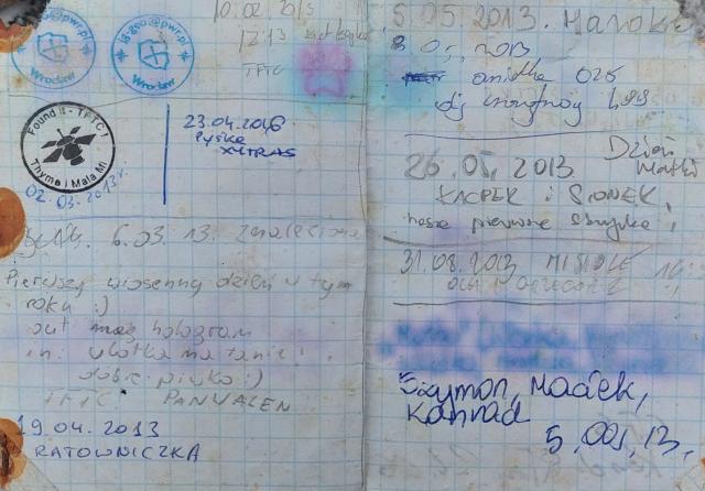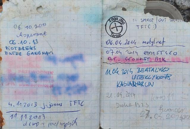 Trochę się namęczyłem razem z Radecki, ale keszyk znaleziony. Sam logbook suchy, jednak stare dzienniczki trochę wilgotne, ale dalej w dobrym stanie. Dzięki za keszyk!