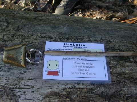 Po powrocie do samochodu, po pierwszym nieudanym podejściu, przeczytaliśmy jeszcze raz opis i ... udało się tym razem. Żeby było śmieszniej, to pierwszym moim posunięciem, po dotarciu do miejsca ukrycia, było to, że przesunąłem leżący na ziemi konar dokładnie nad skrzynkę, której później nie mogliśmy odszukać.