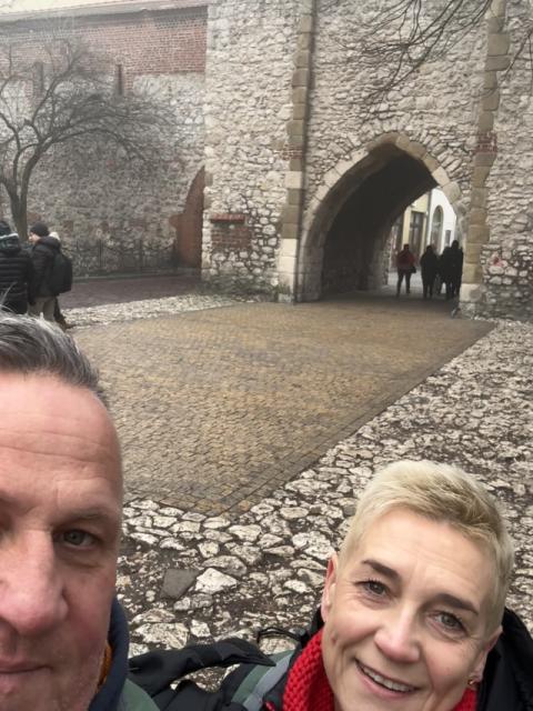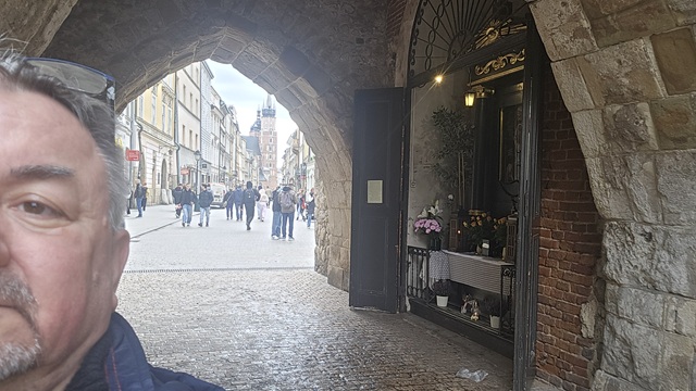 Siedzę sobie przy barbakanie. Nie podoba mi się tak ilość turystów lub co gorsza tu mieszkających obcokrajowców. Istna śmietanka światowa. Pełno dzisiaj jakichś włoskich grup szczególnie. Zaskoczyła mnie kaplica w środku z obrazem, ale przy takich tłumach nie ma mowy o jakimś mierzeniu. Kroki zrobione i teraz zobaczymy jak dobrze oszacowałem tę długość. Dzisiaj dzień przeznaczony na zwiedzanie Krakowa pod kątem opencaching.
