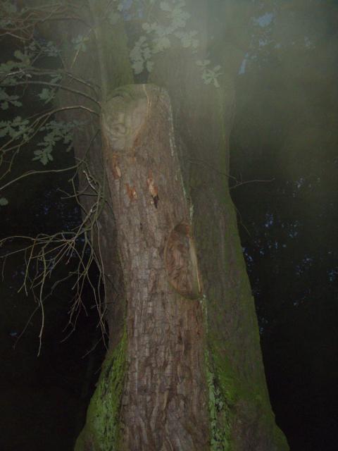 Na miejscu, prócz drzewa z rzeźbami zastaliśmy pusty pojemnik - bez zatyczki i logbooka. Daliśmy nowy pojemnik i logbook. Dziękujemy za skrzynkę.