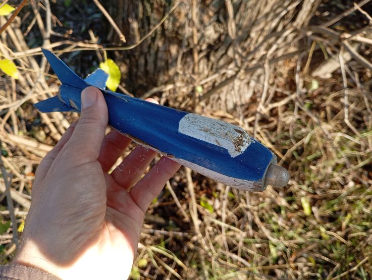 Skrzynka w postaci samolotu - bardzo tematyczna Jest na miejscu. Trochę się bałem rozbierać nos samolotu , gdzie tkwi LB, ale się udało drobnymi ruchami zdemontować pojemnik. Później udałem się do zadbanego miejsca z obeliskiem. Dobrze, że tak ładnie upamiętniona historia. Napis, żeby pilota tam nie szukać też daje do myślenia.