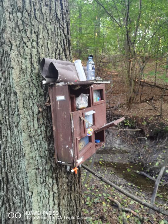 Na tą wyprawę trzeba się przygotować jest tu dużo błota i komarów, skrzynka duża i widoczna bardzo ciekawy mechanizm.