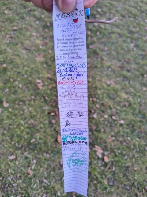 Znalezienie obiektu z wierszyka po ciemku okazało się być bardziej problematyczne niż się spodziewałem. Niestety jest już cieniem dawnego siebie, a zapalić latarki nie szło, bo w okolicy zadziwiająco dużo ludzi jak na tą godzinę w dzień powszedni. Łażąc dookoła w końcu udało się namierzyć, krótka chwila macania i już mam skrzynkę w ręce.