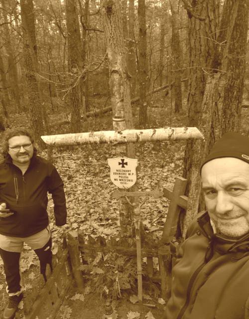 Po drodze, która za nami i która była jeszcze przed nami mijaliśmy wiele miejsc pamięci, krzyży i kapliczek. Niestety zaliczanie każdego kesza znacznie wydłużyłoby eskapadę. Tutaj chwilę się zatrzymaliśmy i w ciemno zrobiłem fotki na zaliczenie, bo miałem 99% pewności, że jest wirtual, a może i dwa. No i się nie myliłem.