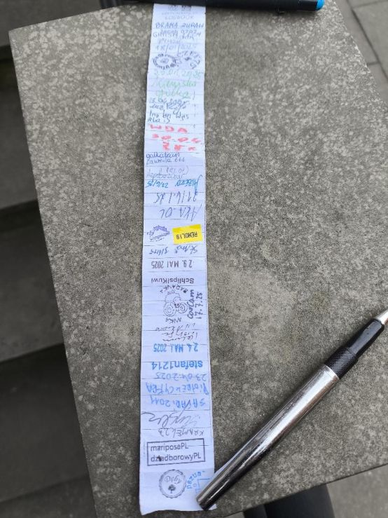 Ludzi, mimo końcówki wakacji i późnej pory masa, ale we dwóch poszło sprawnie. Dobrze, że autor dał spojlery, dzięki czemu wpisy były dokonywane raz, dwa, bez zwracania na siebie uwagi. Dzięki za odwagę i okeszowanie tego rejonu ;)