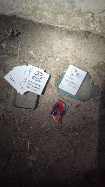 Nie wiem czy właściciel (chyba?) wie o skrzynce, ale pozwolił obejrzeć stajnię i gajówkę.
